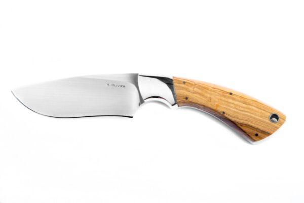 A Olivier knives are classic knives manufactured for the most part with polished stainless bolsters and N690 steel. They are your classic African hunting style knife made to the standards of the Knife Guild of South Africa by Andries Olivier. Handle materials include various hardwoods and bone. The leather sheath is right hand only.