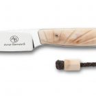 The Bateleur is our bird and trout knife. It can be used for meticulous caping jobs; and with its new lanyard and bead and locking sheath design it is also an excellent EDC knife.