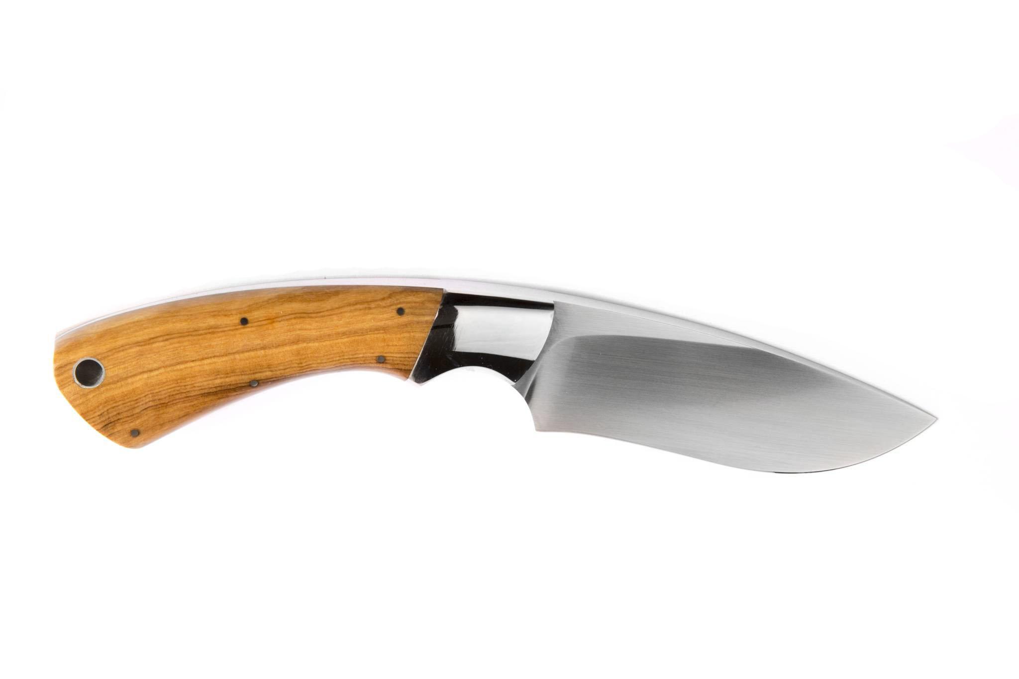 A Olivier knives are classic knives manufactured for the most part with polished stainless bolsters and N690 steel. They are your classic African hunting style knife made to the standards of the Knife Guild of South Africa by Andries Olivier. Handle materials include various hardwoods and bone. The leather sheath is right hand only.